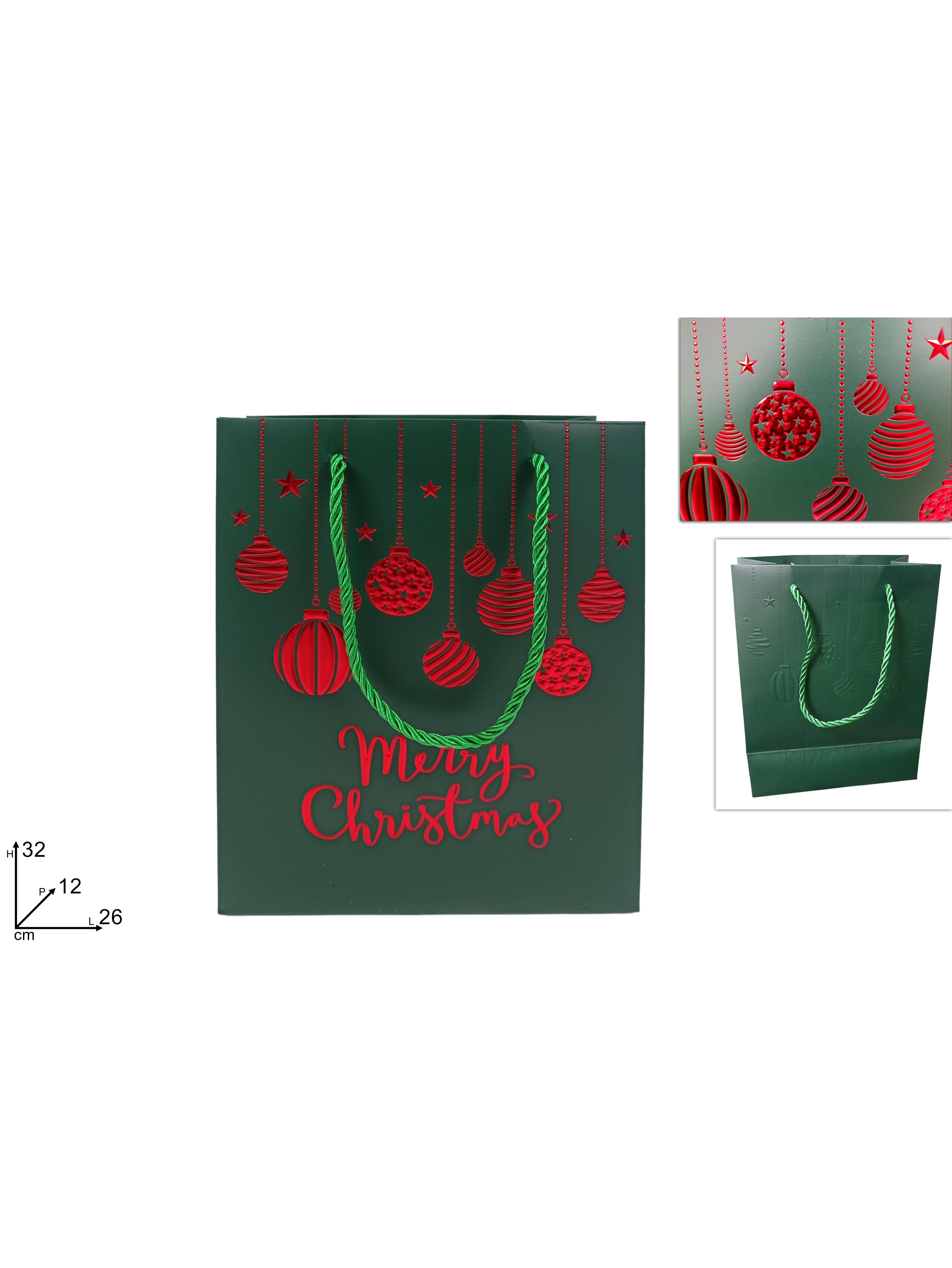 Χριστουγεννιάτικη τσάντα δώρου με διαστάσεις 26x32x12cm σε πράσινο και κόκκινο χρώμα