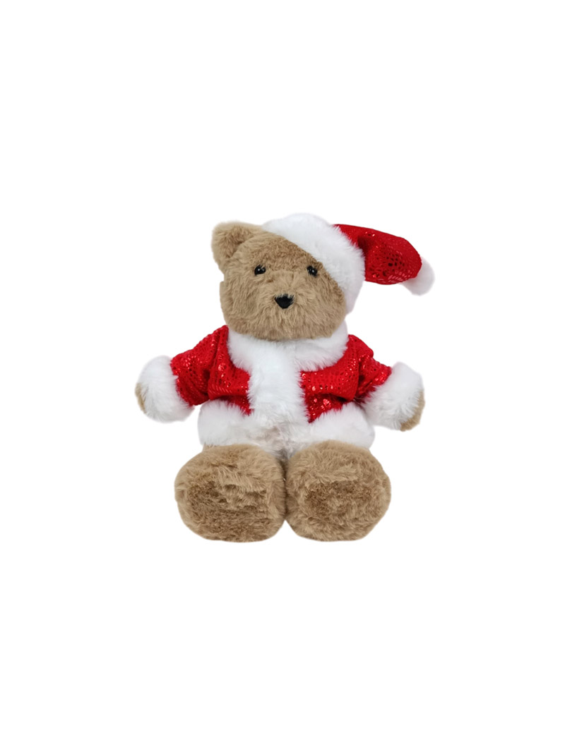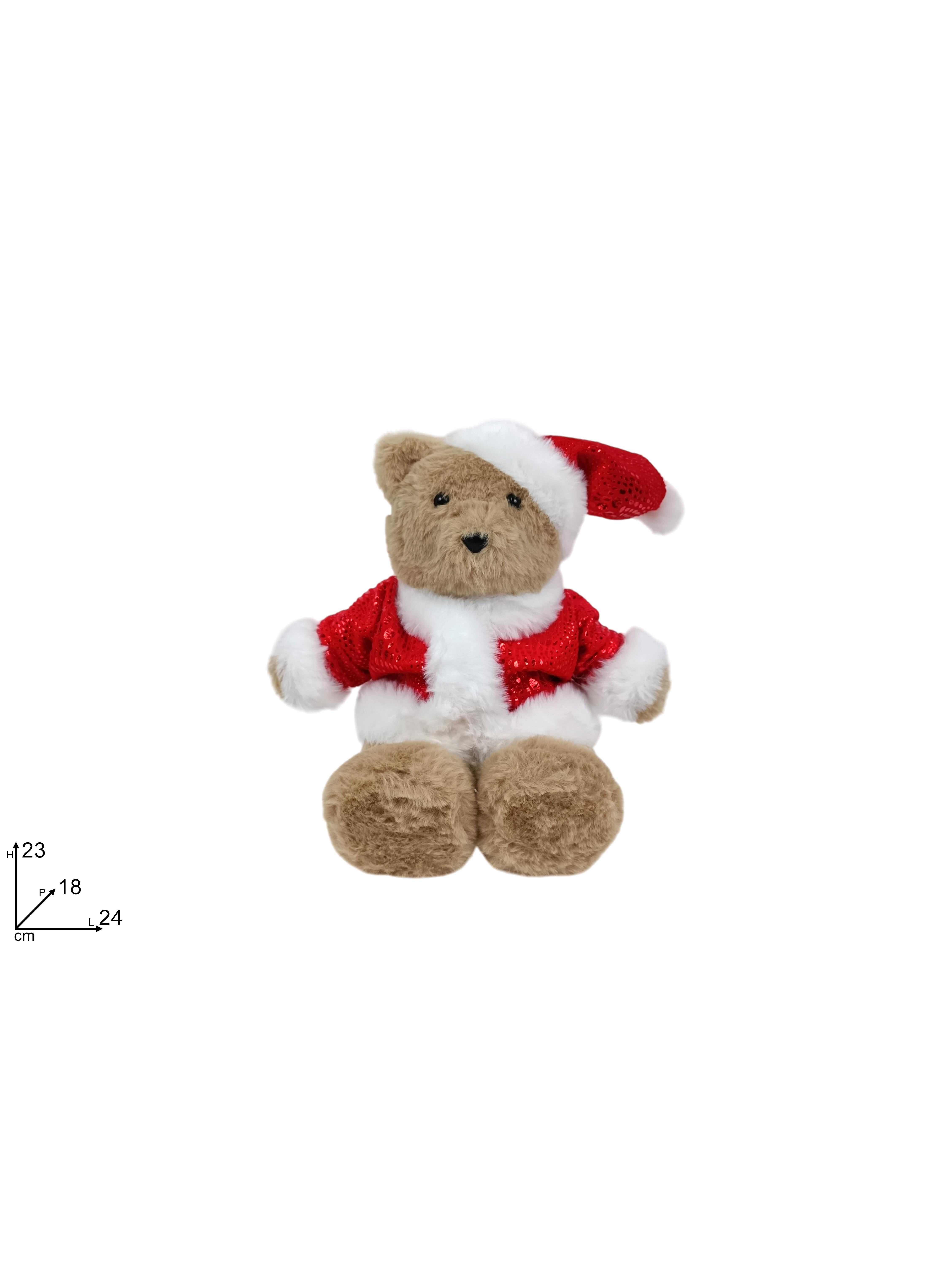 Χριστουγεννιάτικο αρκουδάκι καθιστό λούτρινο με ύψος 32cm με κόκκινο σκουφάκι