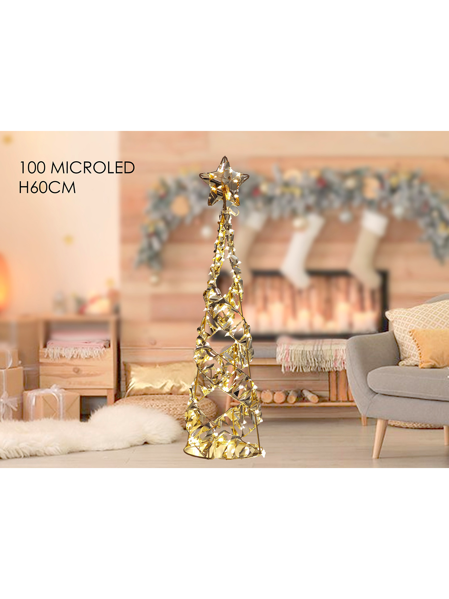 Χριστουγεννιάτικο δέντρο φωτιζόμενο με 100 μικρολέντ με ύψος 60 εκ. χρυσό χρώμα