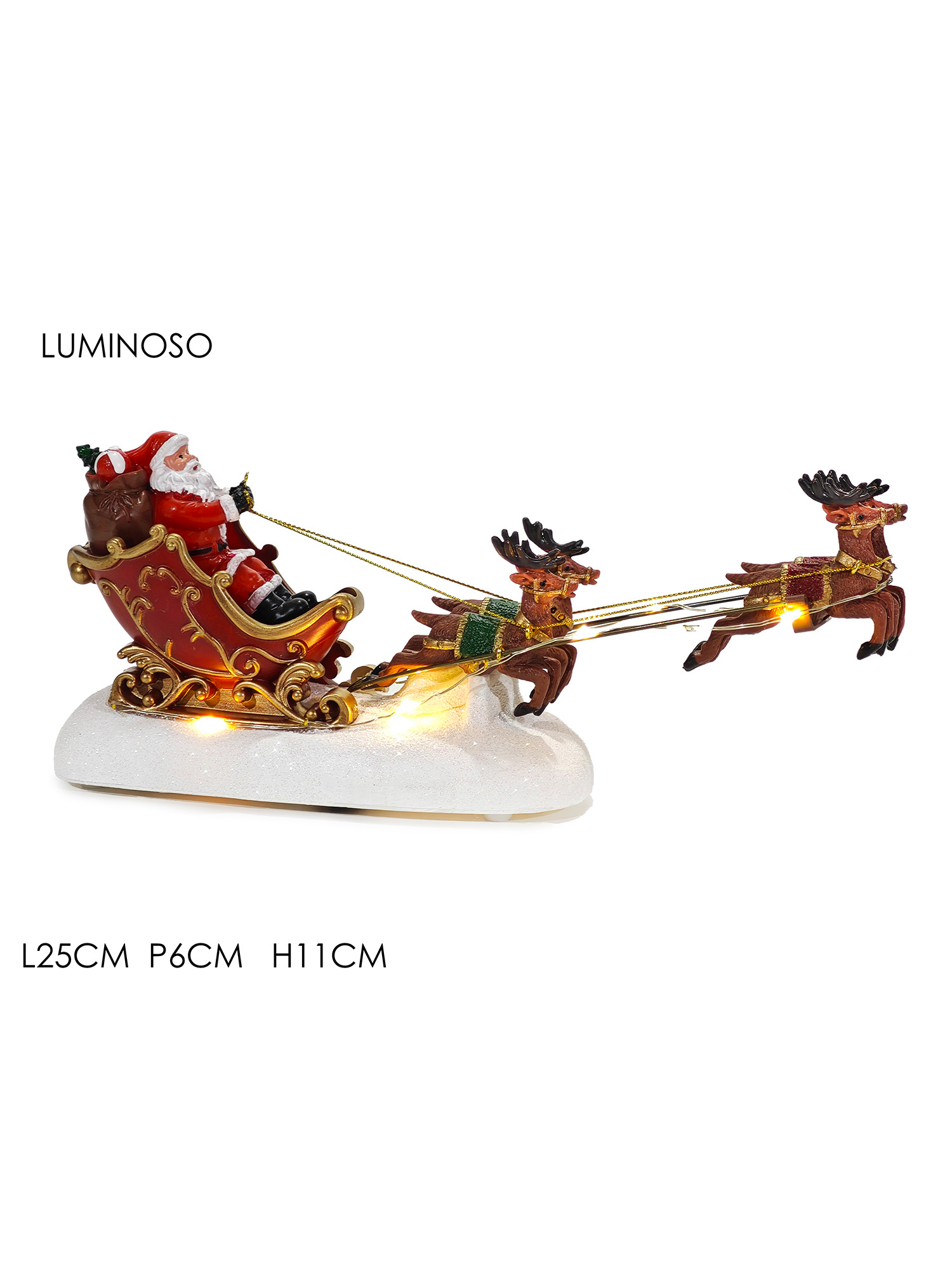 Χριστουγεννιάτικο έλκηθρο με Αη-Βασίλη και ελαφάκια με φως,κίνηση και μουσική με διαστάσεις 25x6x11cm