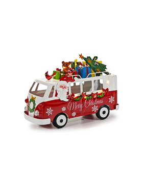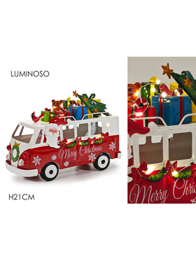 Χριστουγεννιάτικο φορτηγάκι με Αη-Βασίλη φωτειζόμενο με ύψος 21cm
