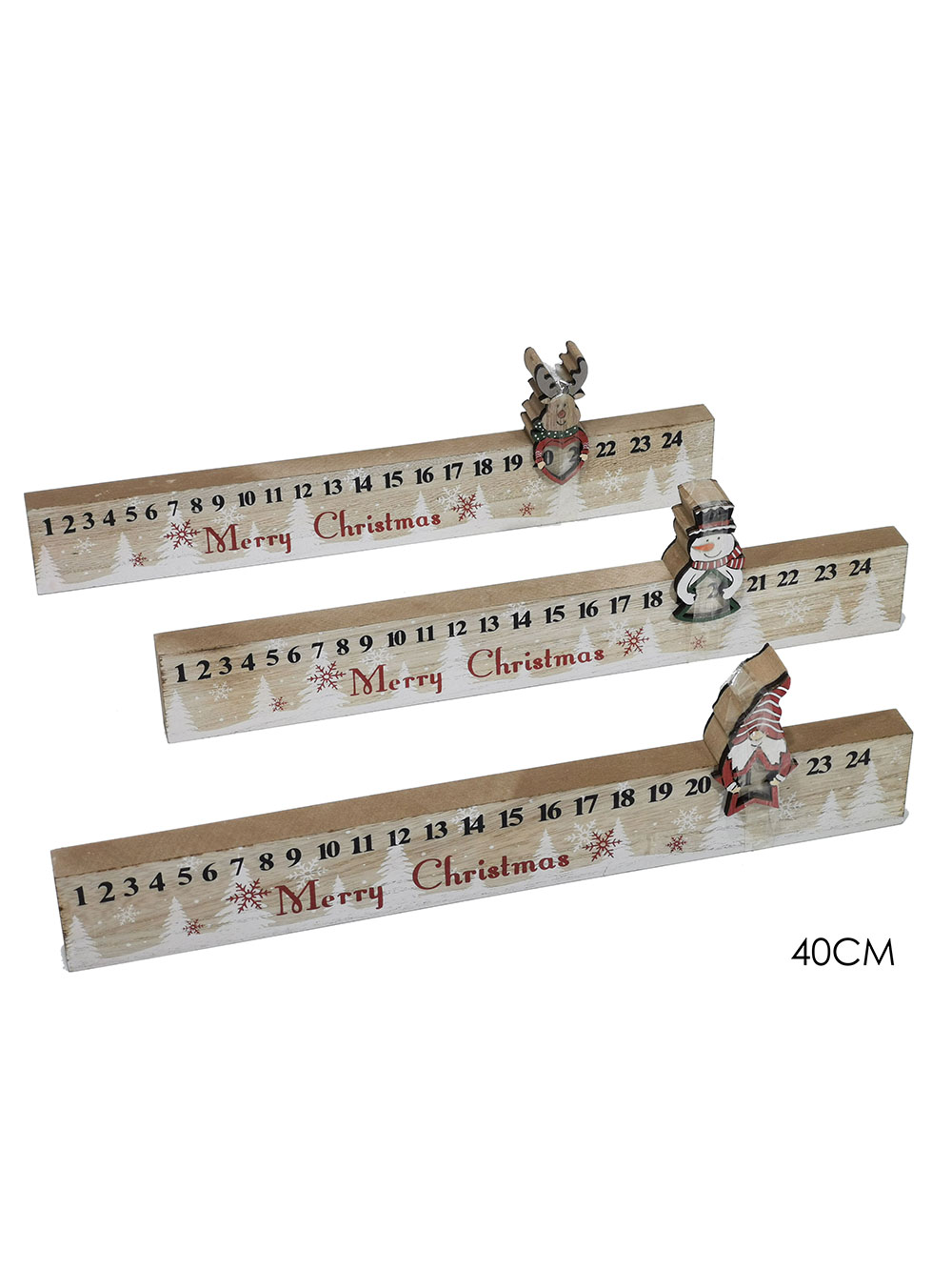 Χριστουγεννιάτικο ημερολόγιο ξύλινο επιτραπέζιο με μήκος 40cm σε κόκκινο χρώμα σε 3 σχέδια