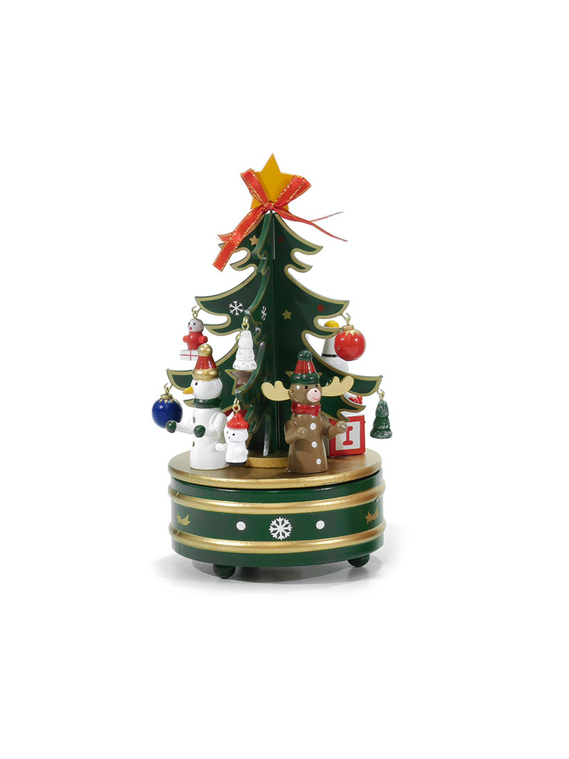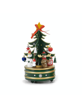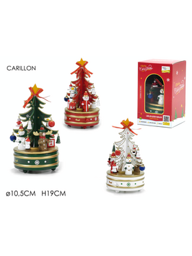 Χριστουγεννιάτικο καρουζέλ ξύλινο έλατο με ήχο και κίνηση σε 3 χρώματα 10.5x19cm