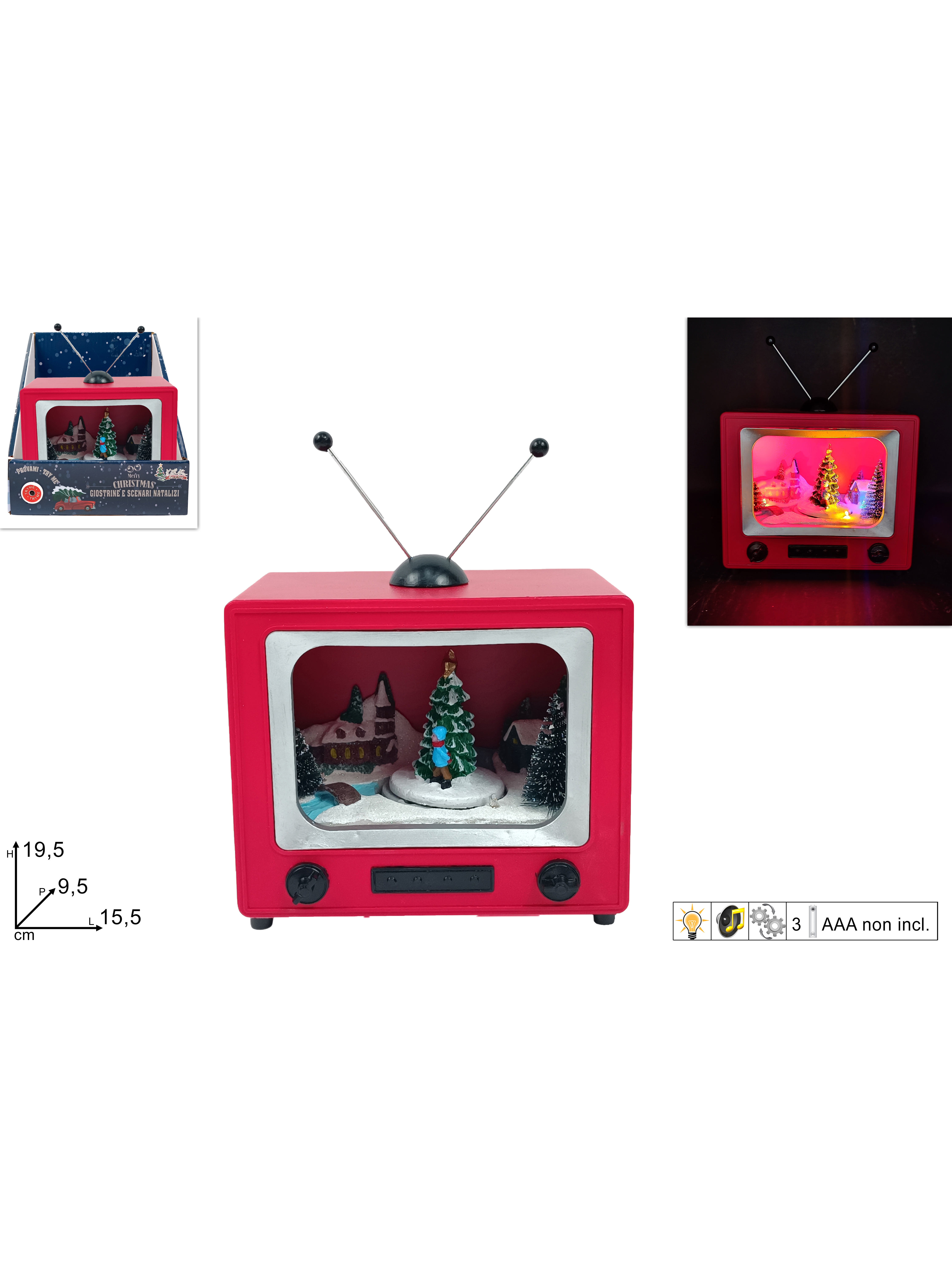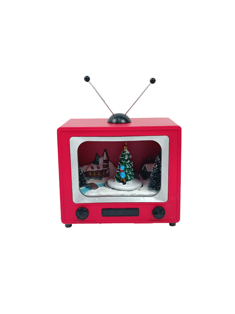 Χριστουγεννιάτικο καρουζέλ μέσα σε σχήμα τηλεόρασης με κίνηση, φως και μουσική