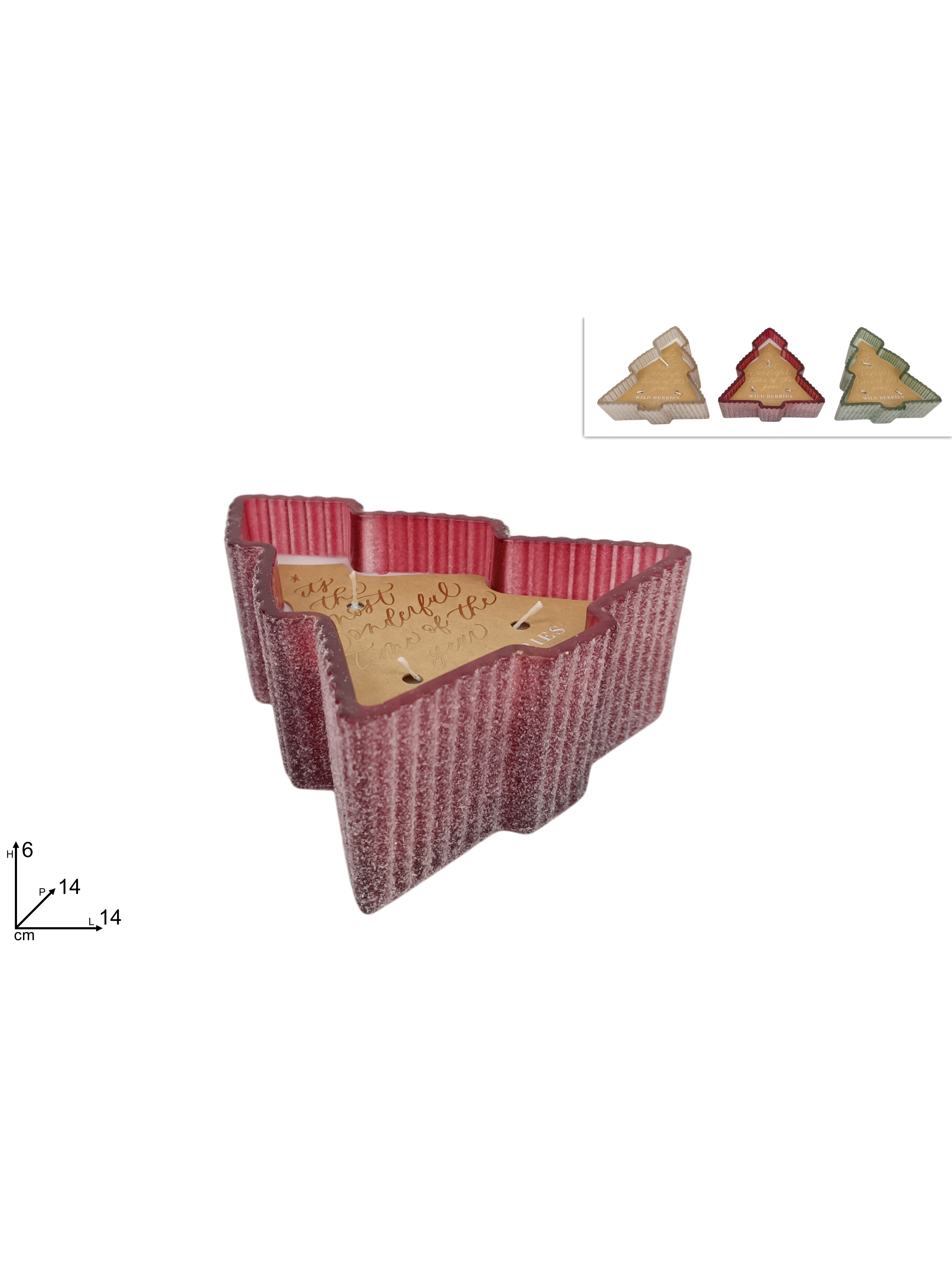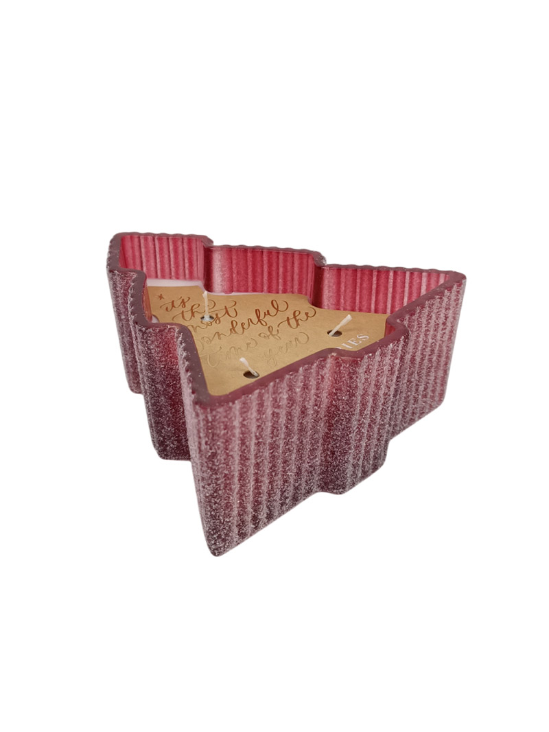 Χριστουγεννιάτικο κερί σε γυαλινο δοχείο με σχήμα δέντρου με 3 φυτίλια 14x14x6cm