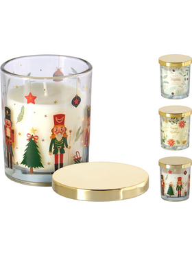 Χριστουγεννιάτικο κερί σε γυάλινο βάζο με καπάκι με ύψος 10cmσε 3 σχέδια