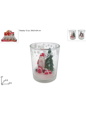 Χριστουγεννιάτικο κερί σε ποτήρι με φιγούρα στο εσωτερικό 7x5.5x5.5cm