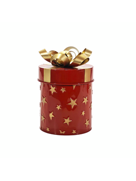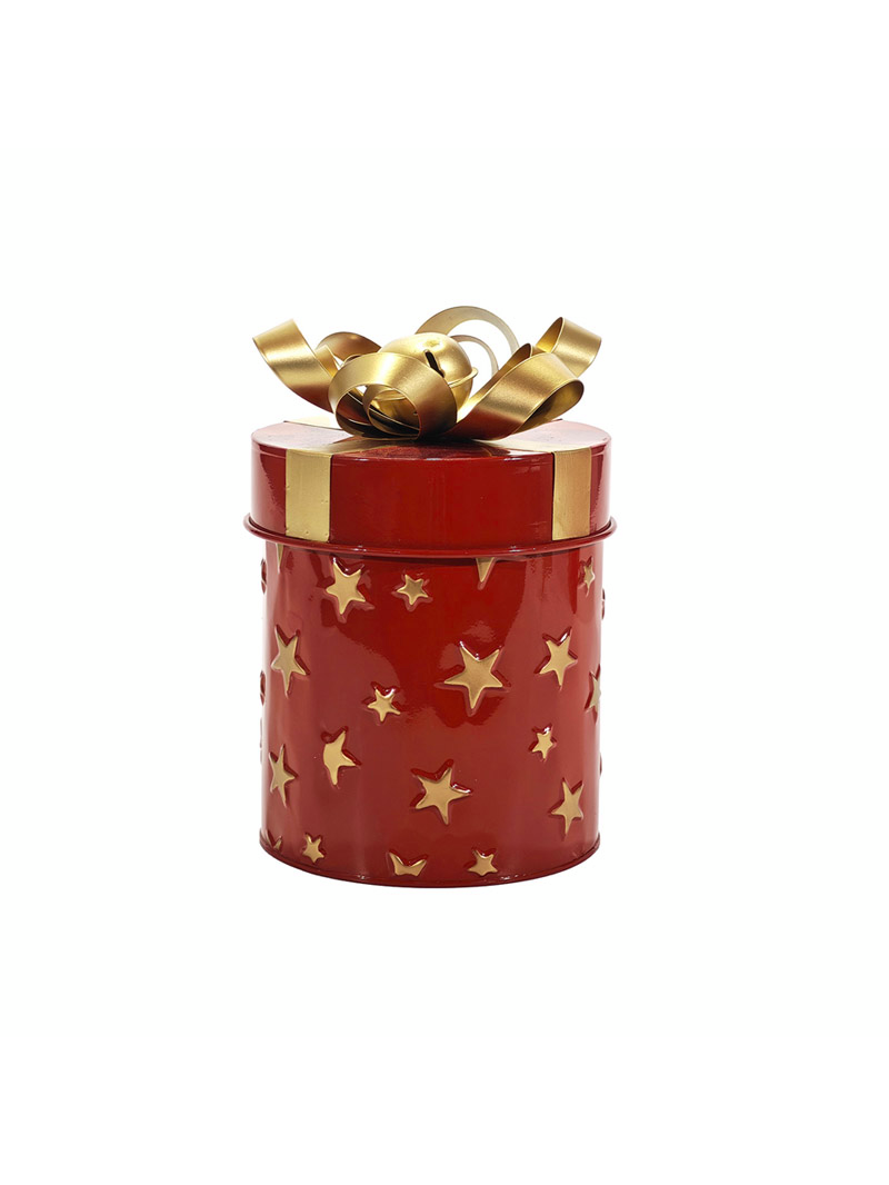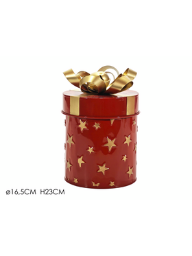 Χριστουγεννιάτικο κουτί δώρου μεταλλικό σε σχήμα γιορτινού δέματος με ύψος 23cm σε κόκκινο χρώμα