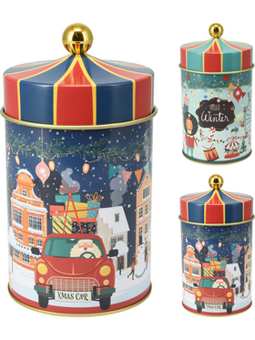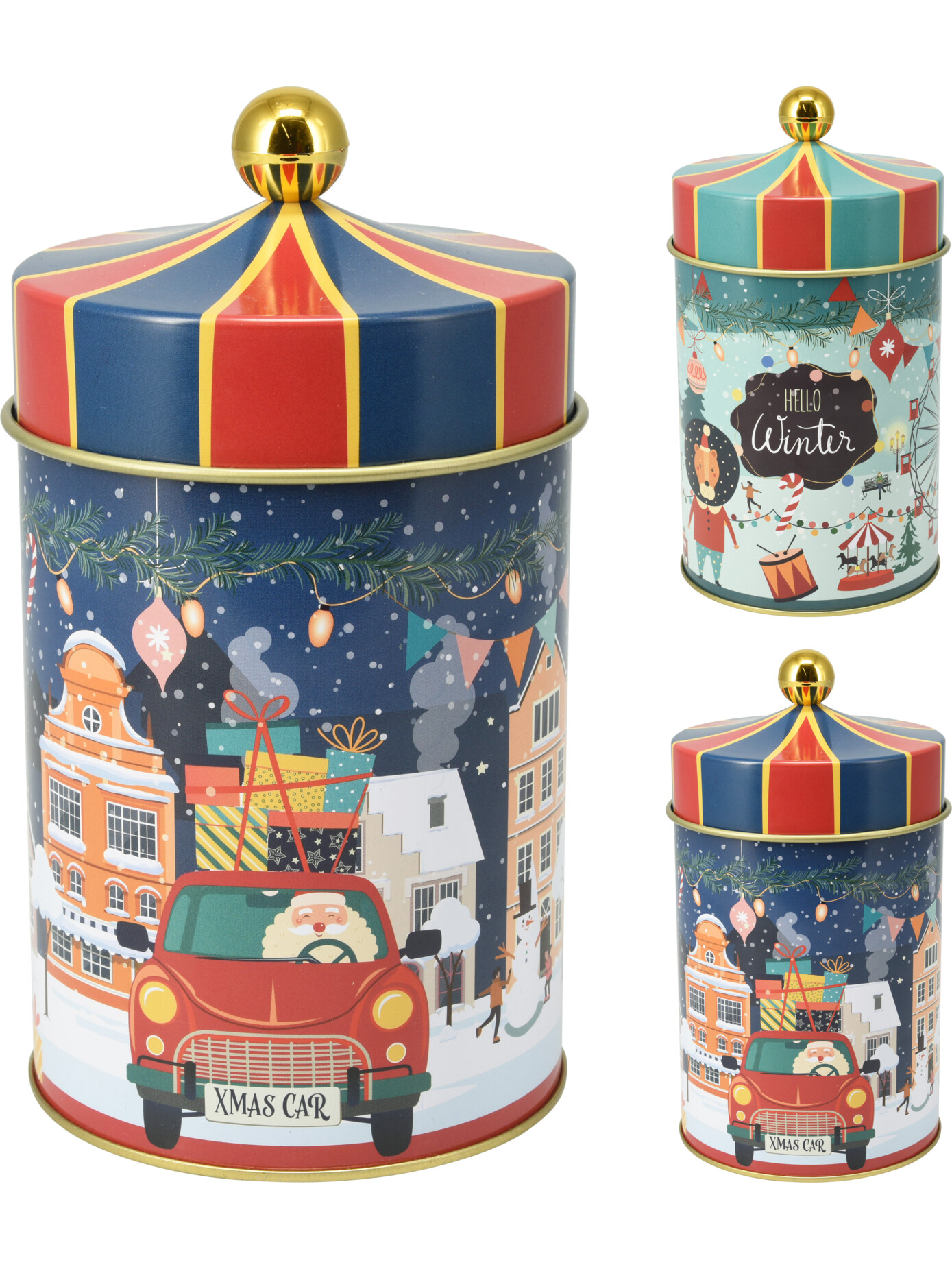 Χριστουγεννιάτικο κουτί μεταλικό με καπάκι με διαστάσεις 10x18cm σε 2 σχέδια