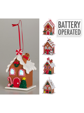 Χριστουγεννιάτικο κρεμαστό σπιτάκι φωτειζόμενο με 10 λαμπάκια led με ύψος 10cm