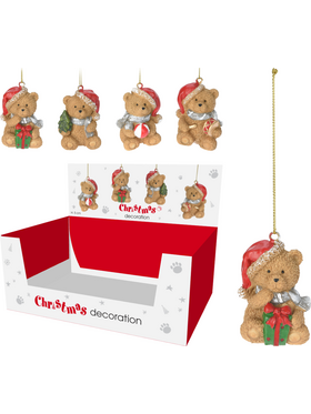 Χριστουγεννιάτικο κρεμαστό στολίδι αρκουδάκι με διαστάσεις 4x5cm σε 4 σχέδια