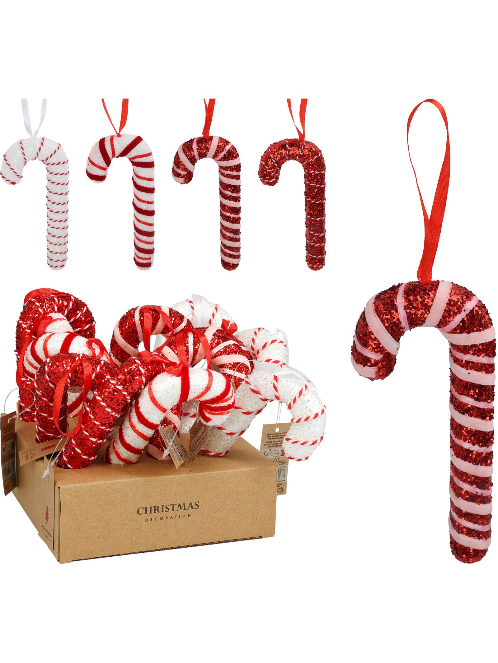 Χριστουγεννιάτικο κρεμαστό στολίδι μπαστούνι με ύψος 17cmσε 4 χρώματα