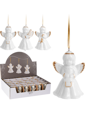 Χριστουγεννιάτικο κρεμαστό στολίδι σε σχήμα αγγέλου με ύψος 6cm σε λευκό χρώμα σε 3 σχέδια