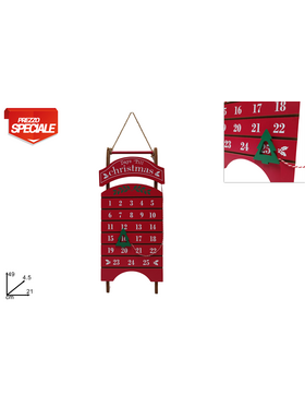 Χριστουγεννιάτικο ξύλινο advent calendar σε σχήμα έλκηθρου σε κόκκινο χρώμα 49x4.5x21cm