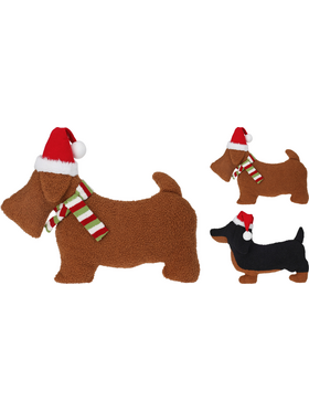 Χριστουγεννιάτικο μαξιλάρι σε σχήμα σκυλάκι με μήκος 38cm σε 2 χρώματα