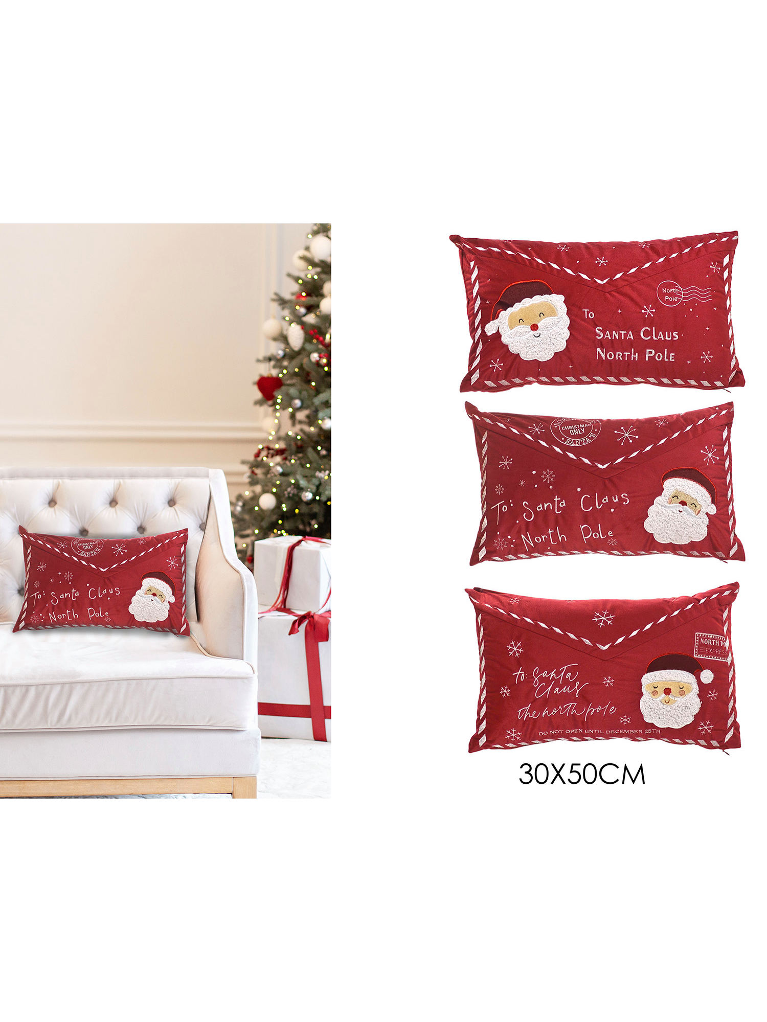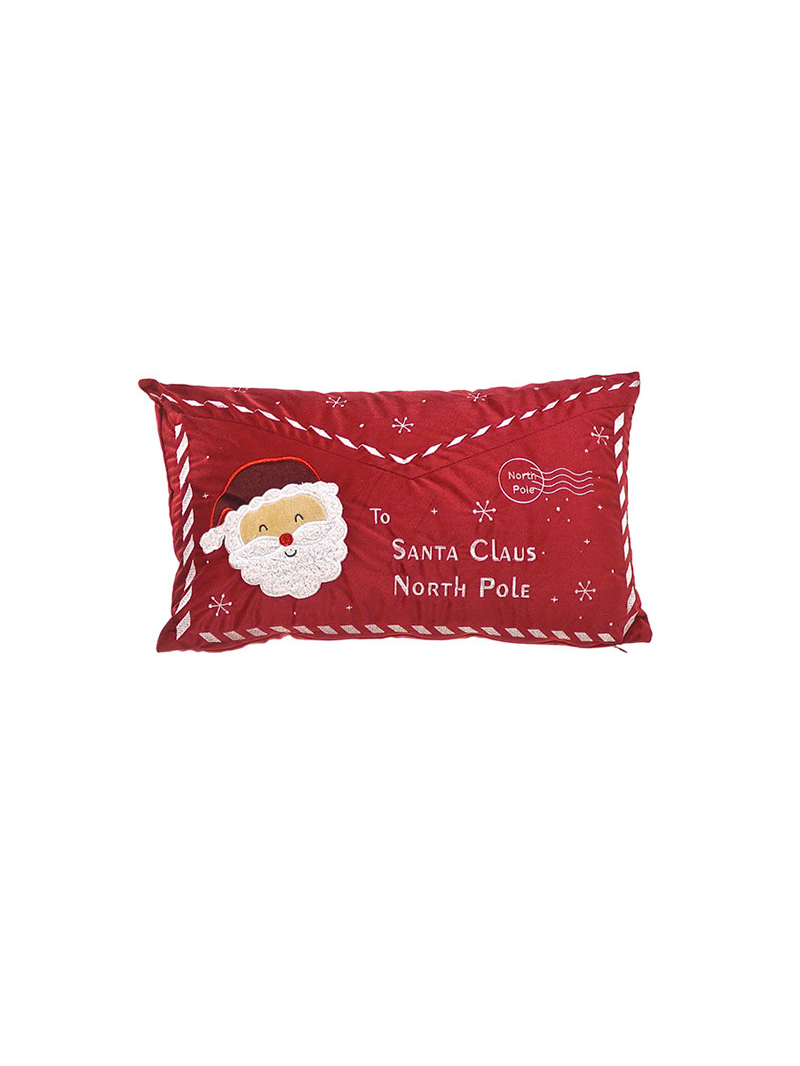 Χριστουγεννιάτικο μαξιλάρι βελούδινο με σχήμα "Γράμμα στον Άγιο Βασίλη" σε κόκκινο χρώμα 30x50cm