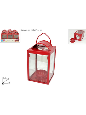 Χριστουγεννιάτικο μεταλλικό φανάρι σε κόκκινο χρώμα με τζάμι 13.5x7.5x7.5cm