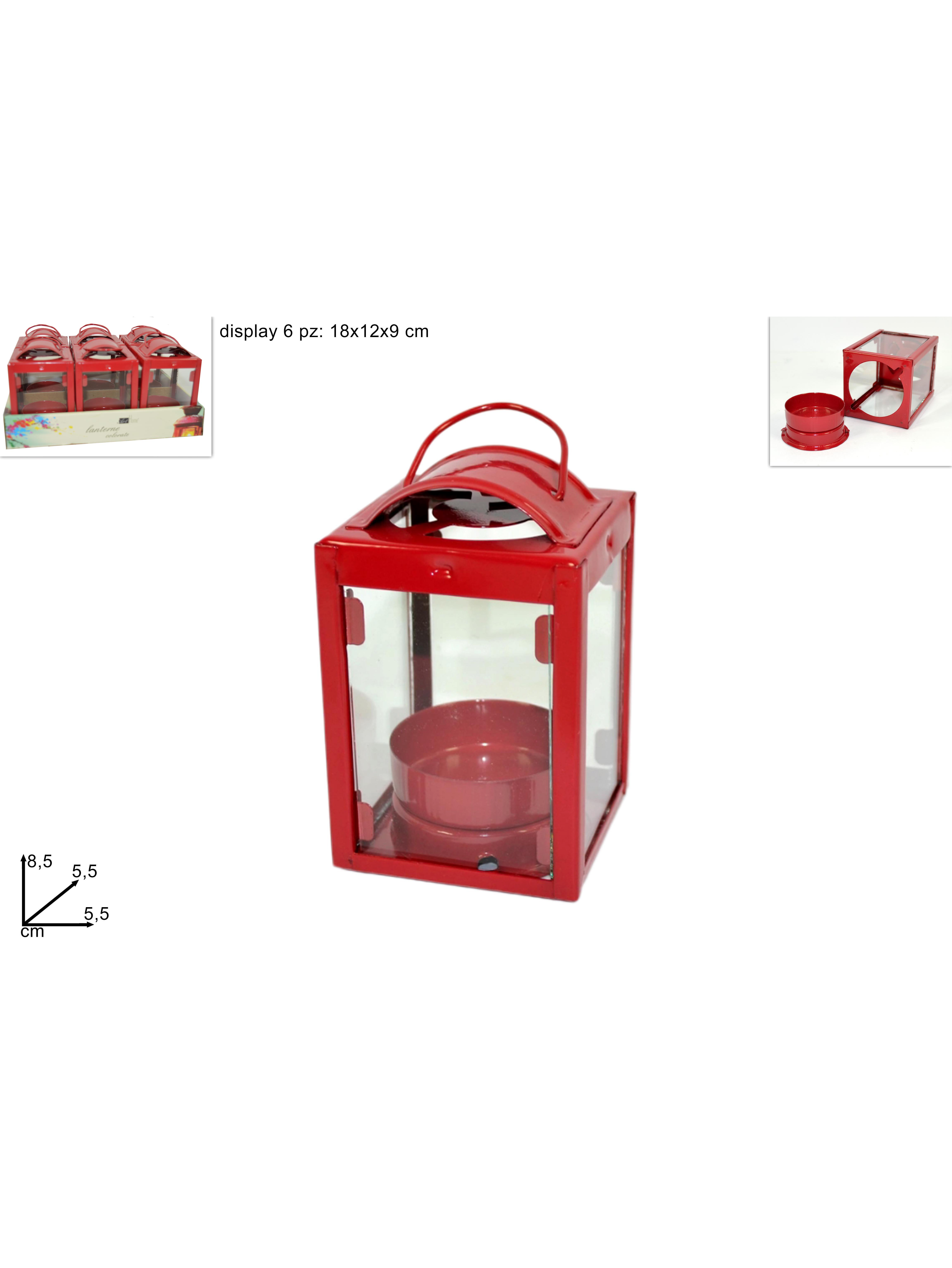 Χριστουγεννιάτικο μεταλλικό φανάρι σε κόκκινο χρώμα με τζάμι 8.5x5.5x5.5cm