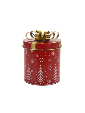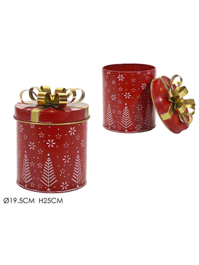 Χριστουγεννιάτικο μεταλλικό κουτί κύλινδρος σε κόκκινο χρώμα με χρυσές λεπτομέρειες 19.5x25cm