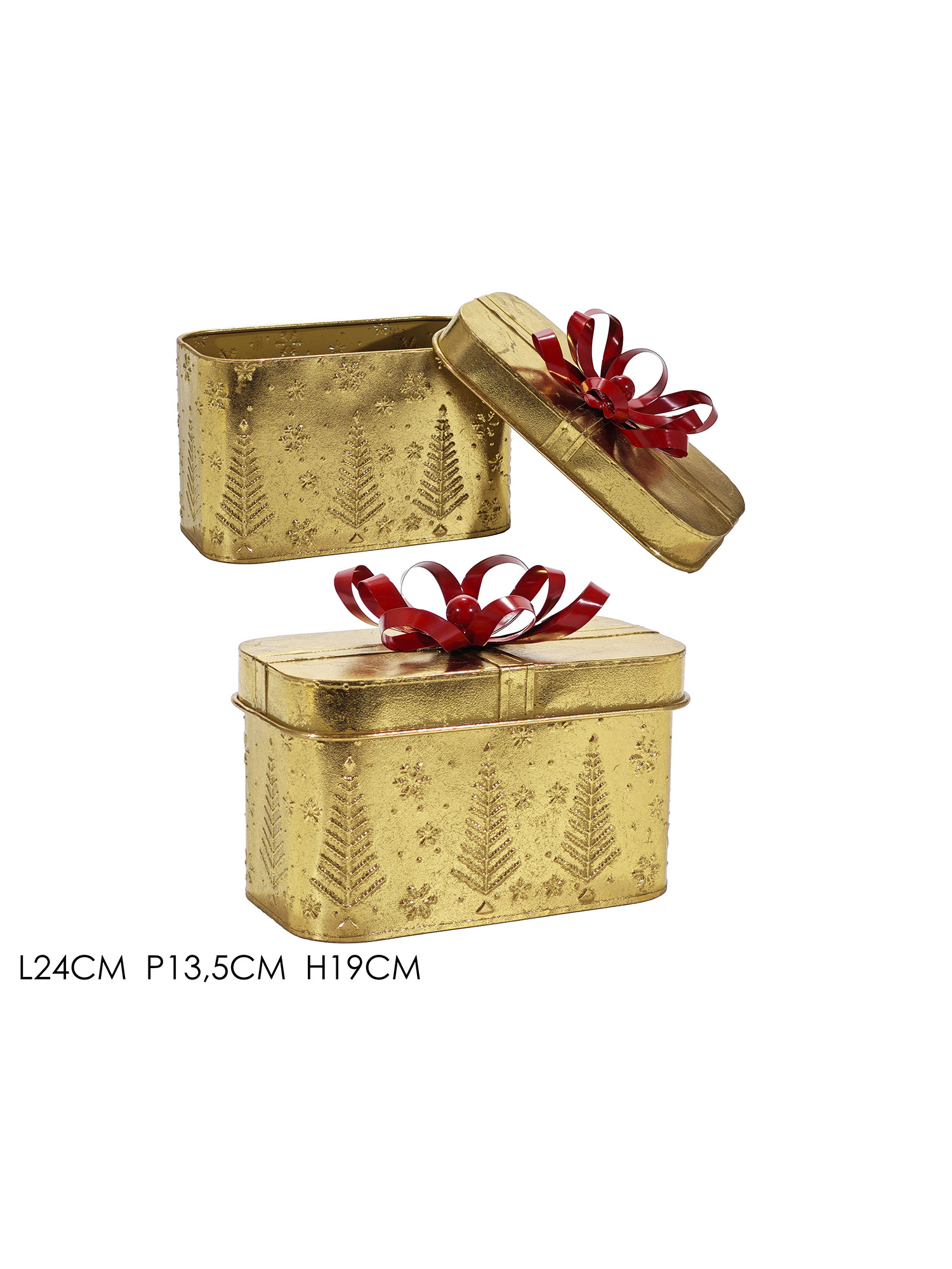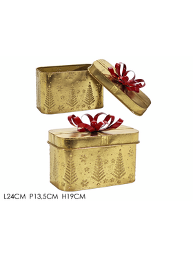 Χριστουγεννιάτικο μεταλλικό κουτί σε χρυσό χρώμα 24x13.5x19cm