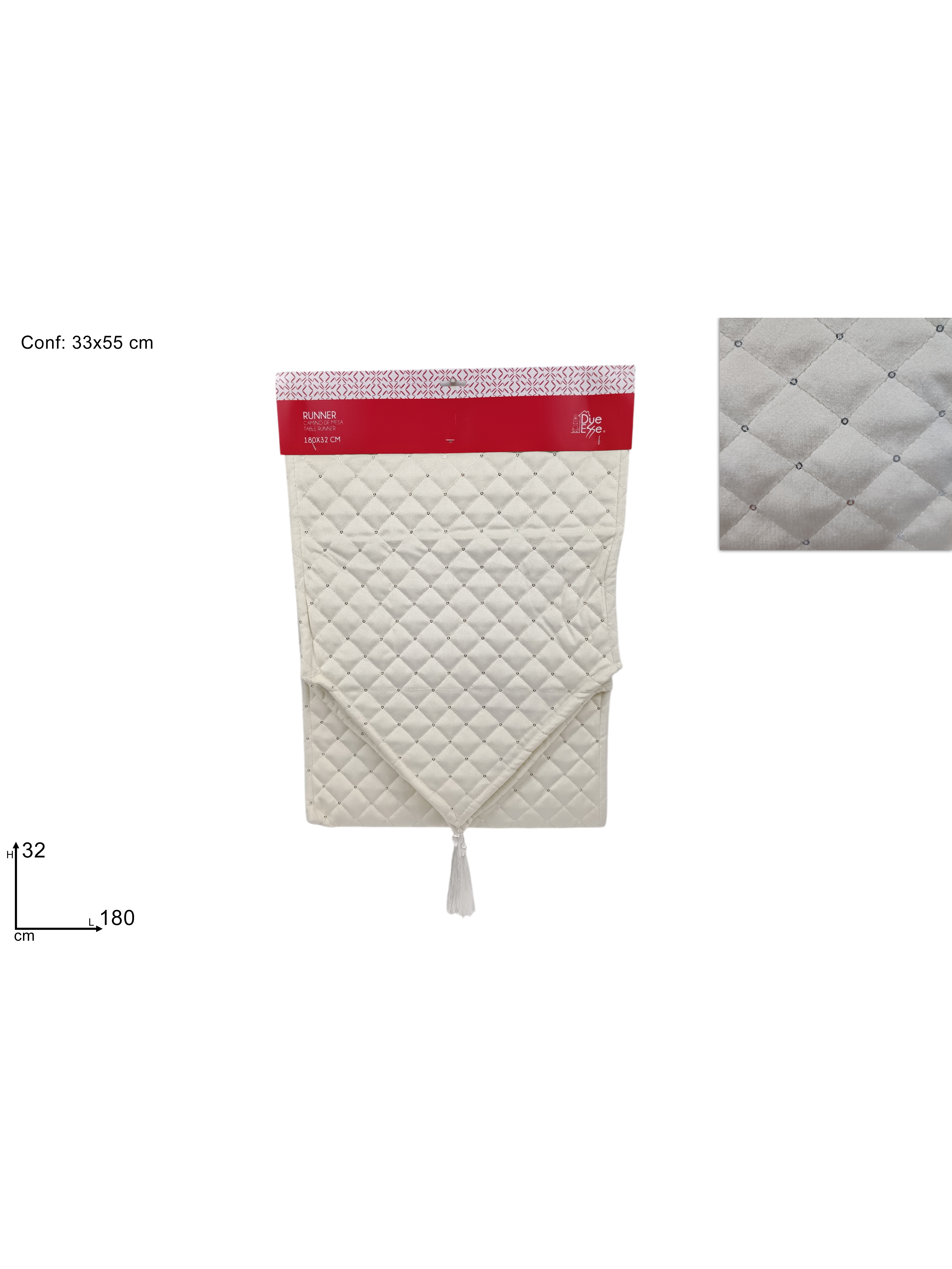 Χριστουγεννιάτικο runner βελούδινο καπιτονέ σε λευκό χρώμα 180x32cm