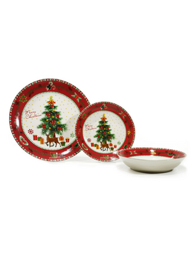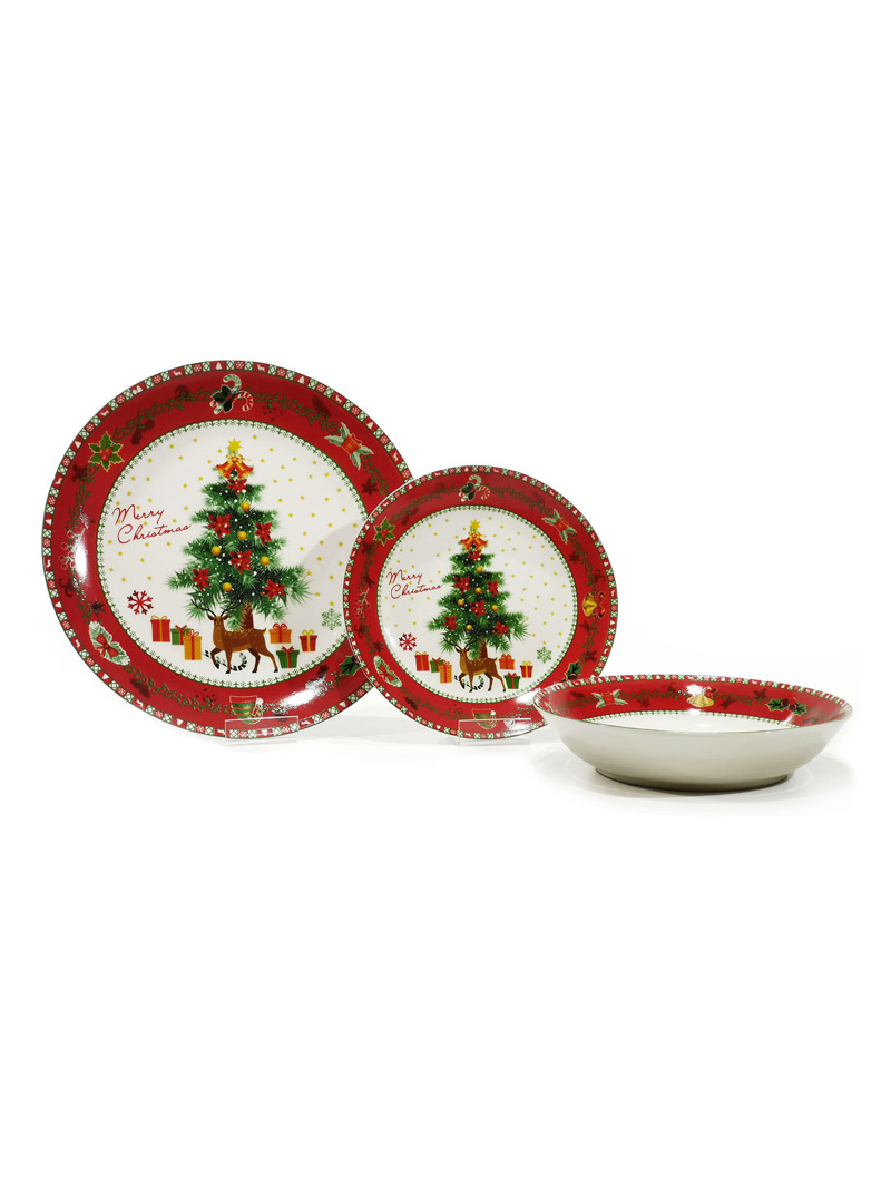 Χριστουγεννιάτικο σερβίτσιο 18τμχ σε λευκό/κόκκινο χρώμα με σχέδια