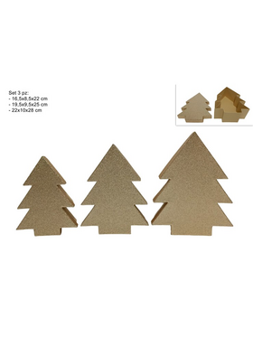 Χριστουγεννιάτικο σετ 3τμχ κουτιά σε σχήμα έλατου σε χρυσό χρώμα 44x32cm