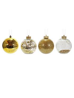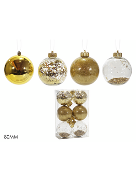 Χριστουγεννιάτικο σετ 6 μπάλες με γκλίτερ με διάμετρο 8cm σε 4 σχέδια σε χρυσό χρώμα