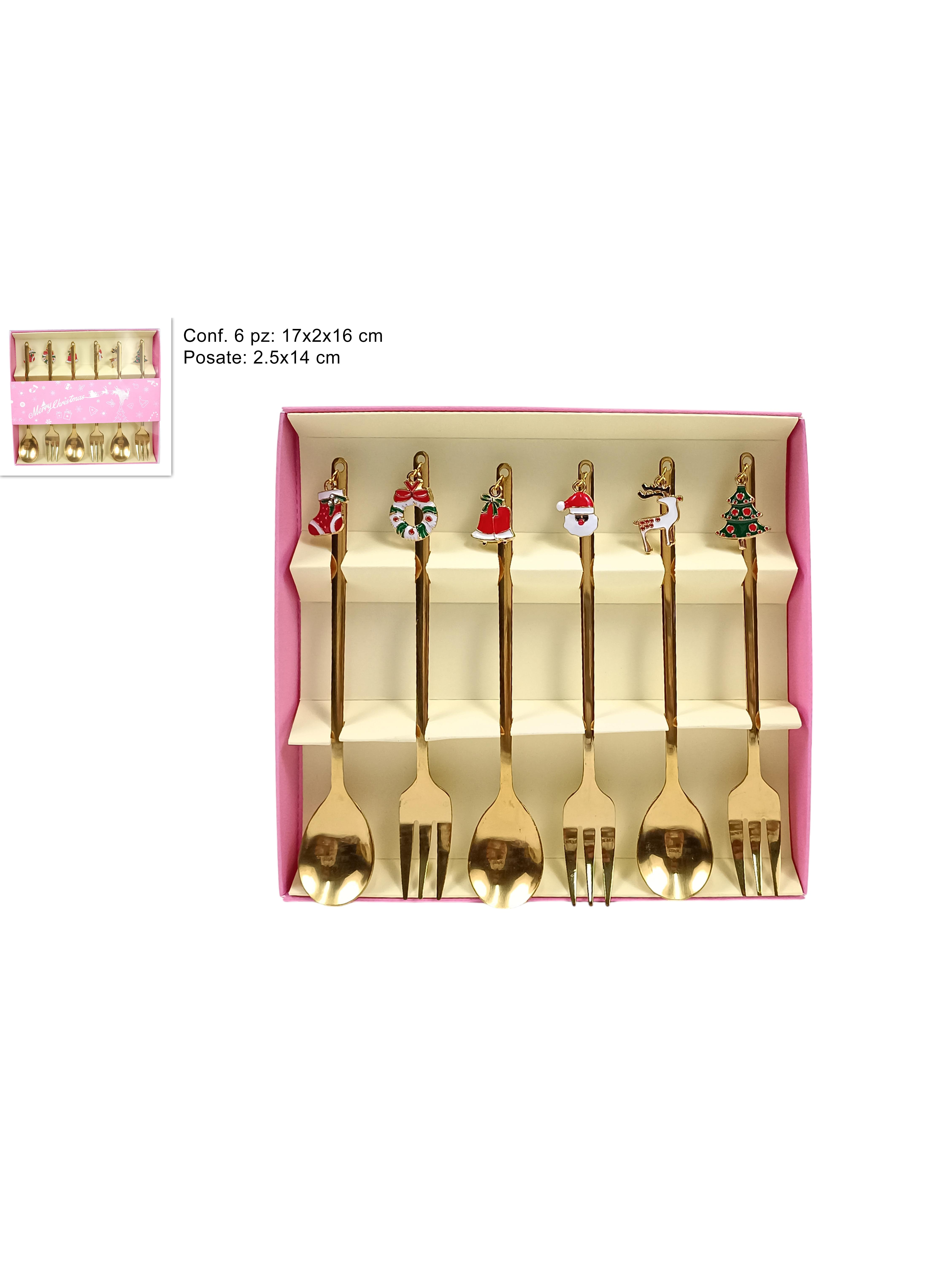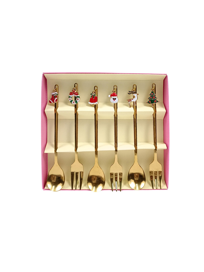 Χριστουγεννιάτικο σετ 6τμχ με πιρούνια και κουτάλια σε χρυσό χρώμα με charms 14x2,5cm