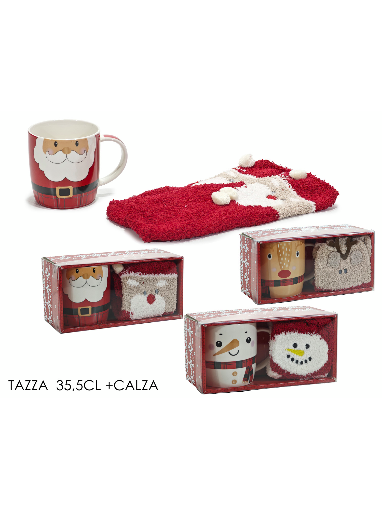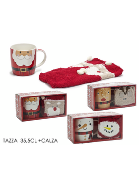 Χριστουγεννιάτικο σετ δώρου φυλτζάνι 355ml με κάλτσες σε 3 σχέδια