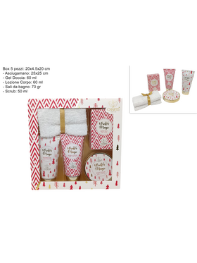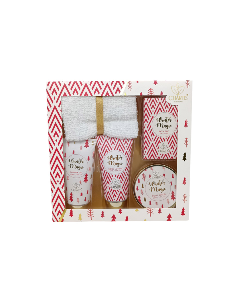 Χριστουγεννιάτικο σετ δώρου λευκό/κόκκινο με αφρόλουτρο, κρέμα σώματος, body scrub, άλατα μπάνιου και πετσέτα