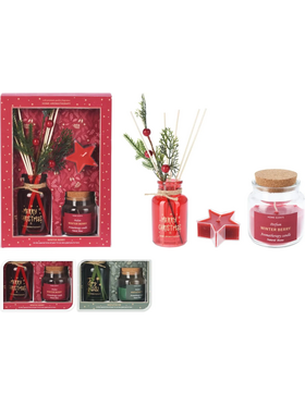 Χριστουγεννιάτικο σετ δώρου με αρωματικό χώρου και 2 κεράκια σε 2 χρώματα
