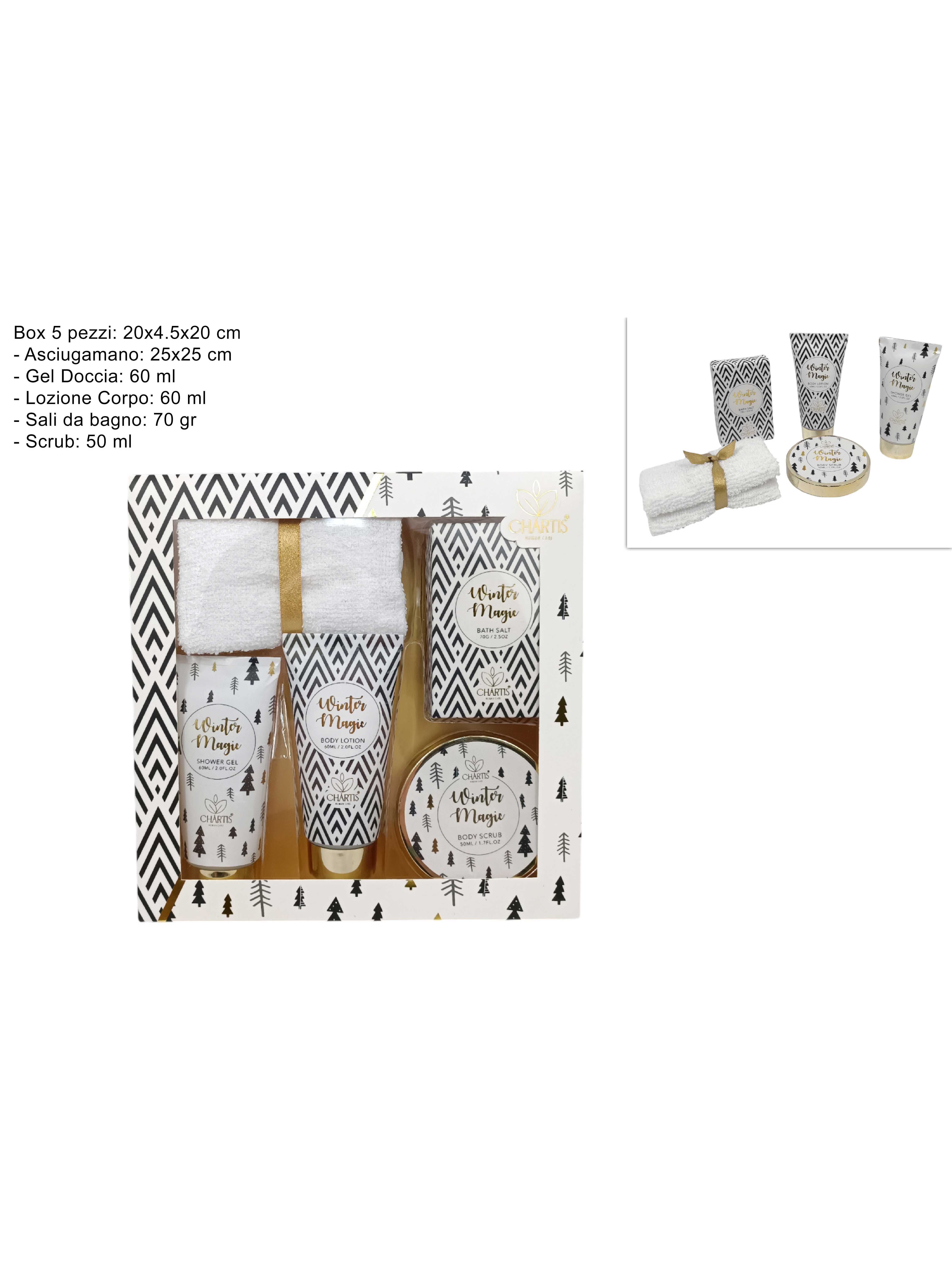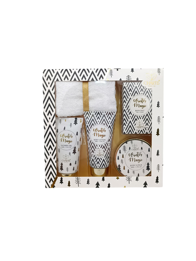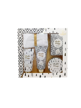 Χριστουγεννιάτικο σετ δώρου χρυσό/μαύρο με αφρόλουτρο, κρέμα σώματος, body scrub, άλατα μπάνιου και πετσέτα