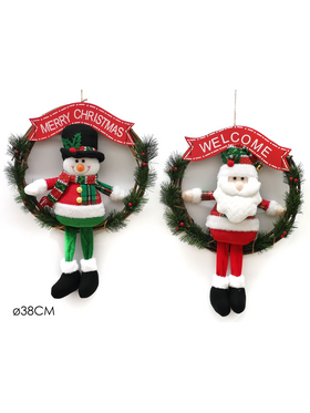 Χριστουγεννιάτικο στολίδι στεφάνι με φιγούρα σε 2 σχέδια 38cm