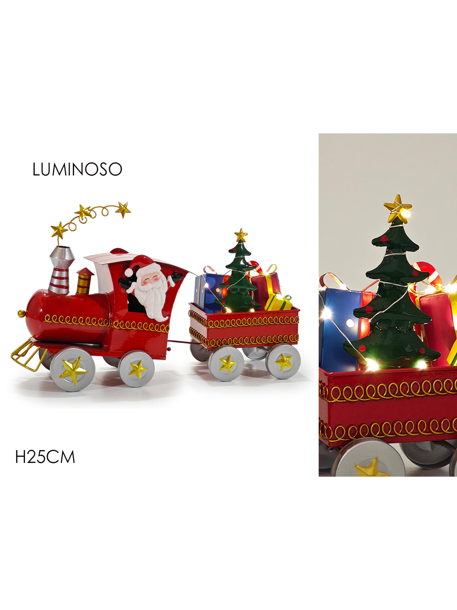 Χριστουγεννιάτικο τρενάκι με Αη-Βασίλη φωτειζόμενο με ύψος 25cm