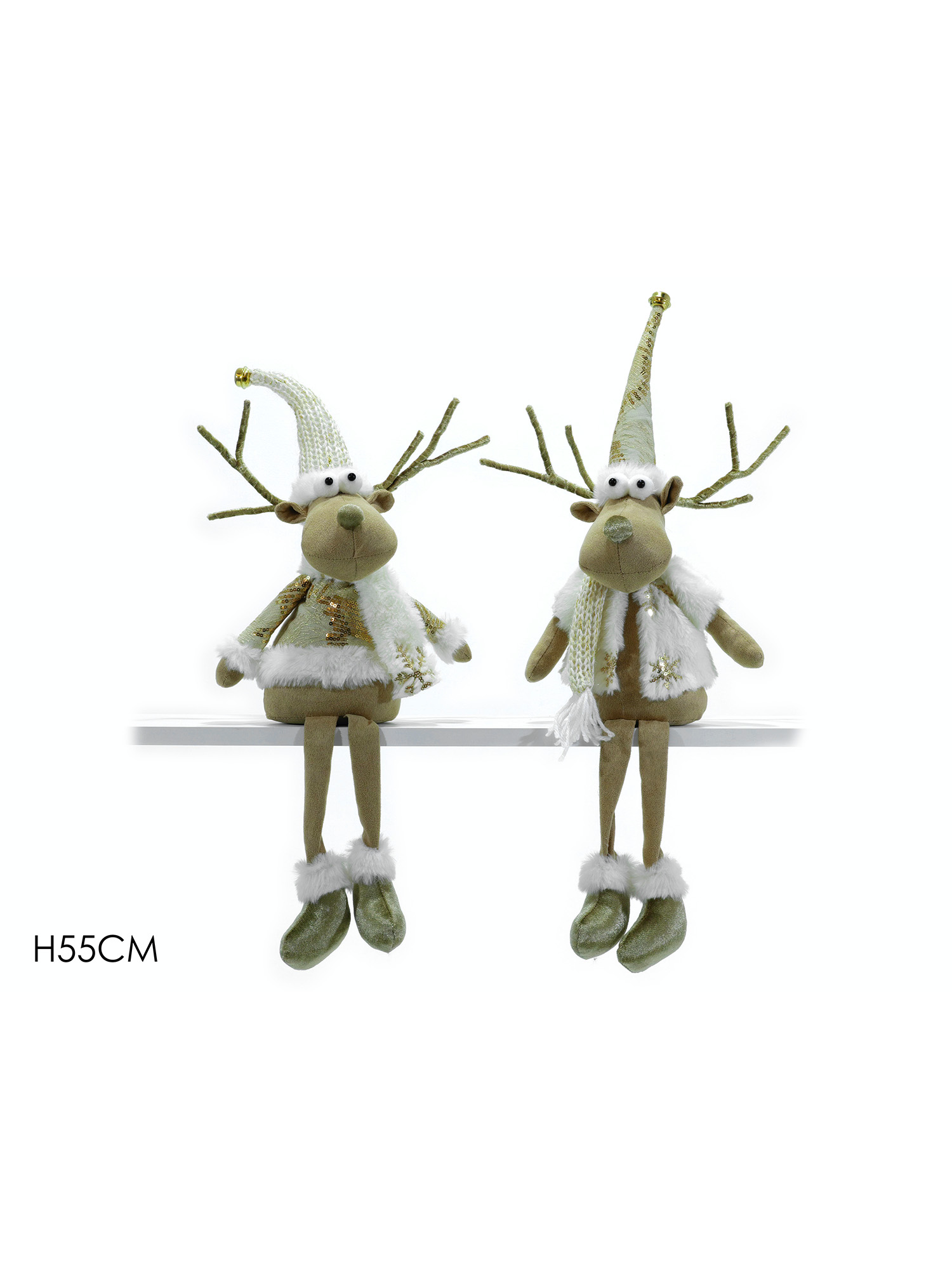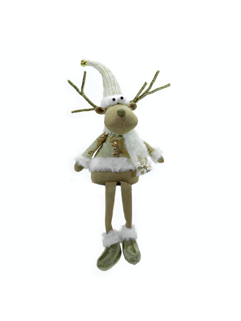 Χριστουγεννιάτικος διακοσμητικός τάρανδος σε καθιστή θέση σε λευκό χρυσό χρώμα 55cm