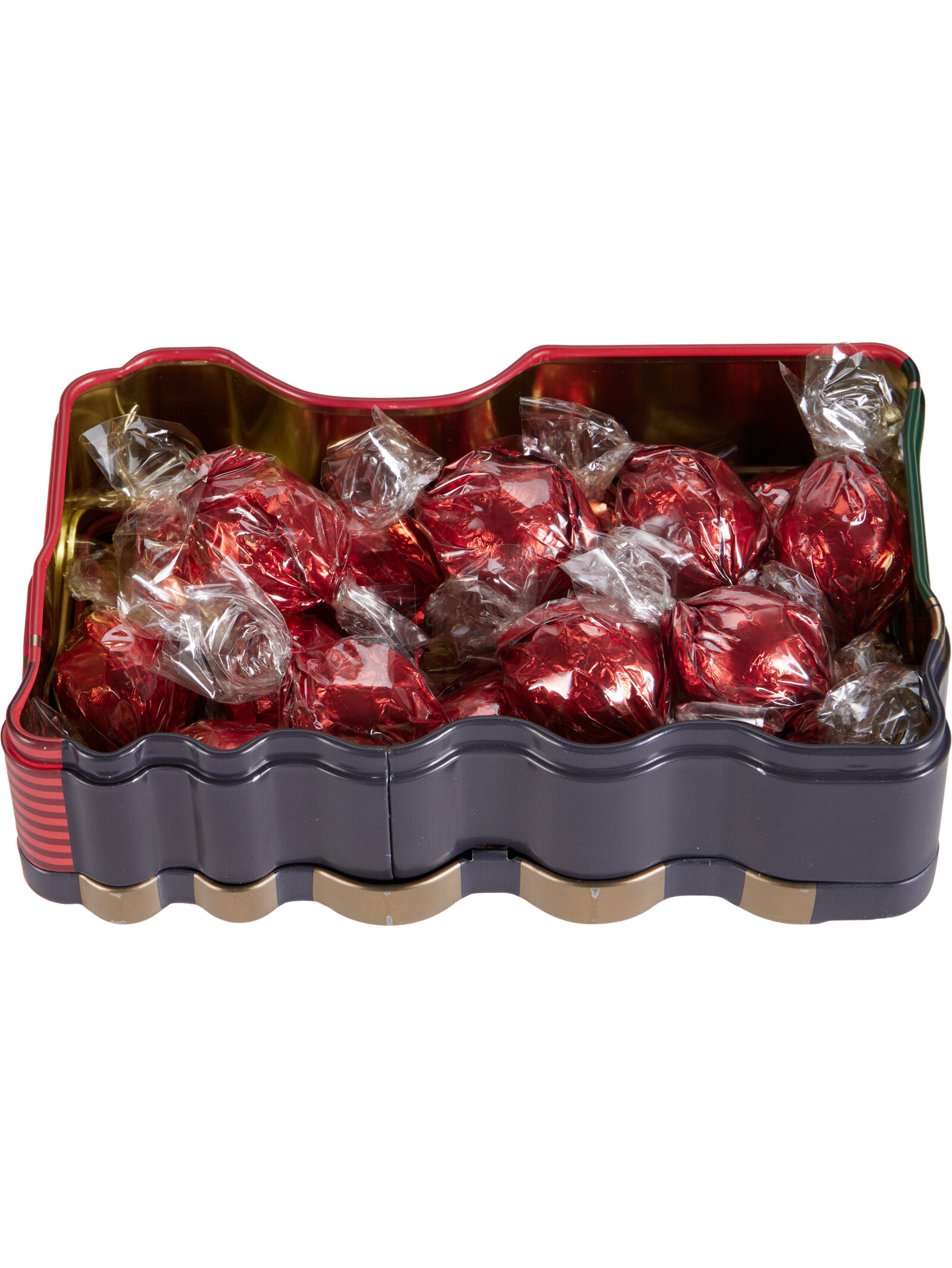 Χριστουγεννιάτικος μεταλλικό κουτί σε σχήμα τρένου με πραλίνες 16x10x6cm