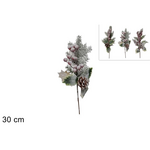 Χριστουγεννιάτικο διακοσμητικό κλαδί χιονισμένο με γκι, ου και κουκουνάρι 30cm