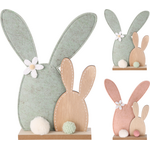 Πασχαλινό διακοσμητικό λαγουδάκια με φουντα στην ουρά σε ξύλινη βάση σε πράσινο χρώμα 22x5x31cm