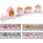 Πασχαλινό ξύλινο διακοσμητικό τρενάκι με φιγούρες σε ροζ χρώμα 30x3.5x8cm