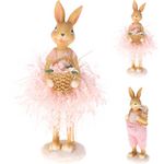 Πασχαλινός διακοσμητικός λαγός με ροζ αμφίεση σε 2 σχέδια 5.5x6x16.5cm