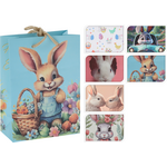 Πασχαλινή σακούλα δώρου μεσαίο μέγεθος σε γαλάζιο χρώμα με λαγουδάκι 18x8x23cm