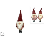 Χριστουγεννιάτικος διακοσμητικός νάνος με βελουτέ κόκκινο σκούφο σε ροζ χρώμα 20x12x42cm