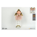Χριστουγεννιάτικο διακοσμητικό αγγελάκι κοριτσάκι μπαλαρίνα με ροζ γούνα & φως σε 2 σχέδια 30cm