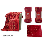 Χριστουγεννιάτικη κόκκινη βελουτέ κουβέρτα με χρυσές χιονονιφάδες 125x150cm