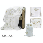 Χριστουγεννιάτικη λευκή βελουτέ κουβέρτα με χρυσές λεπτομέρειες σε πουγκί 125x150cm