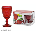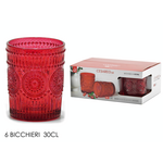 Σετ 6 κόκκινα ανάγλυφα ποτήρια νερού 300ml