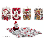 Χριστουγεννιάτικο σετ λούτρινο και βελουτέ κουβερτούλα με τον Άγιο Βασίλη 75x100cm