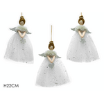 Χριστουγεννιάτικο στολίδι αγγελάκι με ασημί φόρεμα και γκλίτερ 22cm