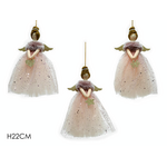 Χριστουγεννιάτικο στολίδι αγγελάκι με ροζ φόρεμα και γκλίτερ 22cm